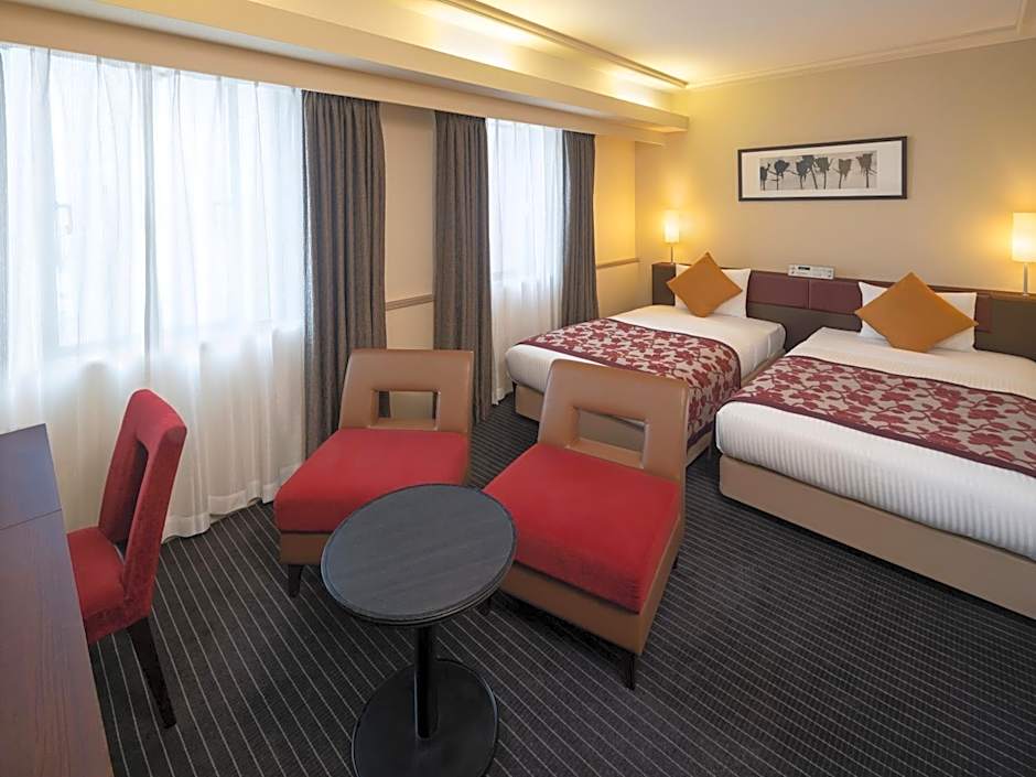 This air-conditioned room has light wood furniture and deep color highlights. Guests can stretch out on the extra long beds, or enjoy a bath. A tea maker and slippers are provided.